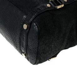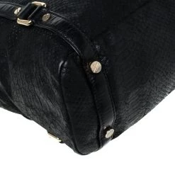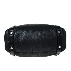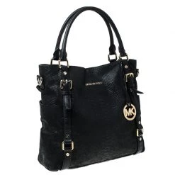 This sleek and spacious Michael Kors bag is luxurious enough to elevate any look. The python-embossed leather body and nylon-lined interior are made to offer durability and ease. This modern tote features a black shade, two top handles and the MK charm.