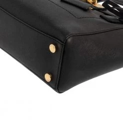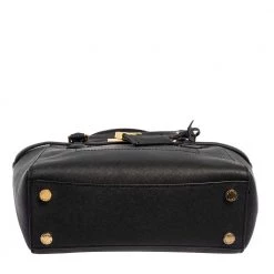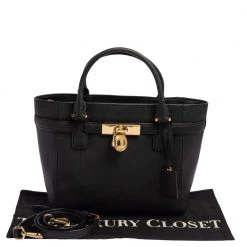 This Hamilton East West tote is a loved bag from MICHAEL Michael Kors. It is crafted from Saffiano leather in a black shade and decorated with a signature padlock on the front. The bag has two handles, a shoulder strap, and a spacious fabric interior. This creation is ideal for everyday use.