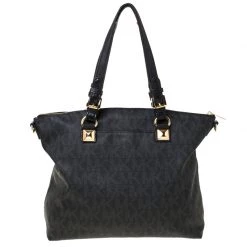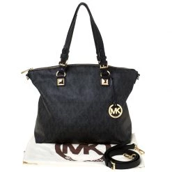 Durable and easy to carry, this signature canvas and leather bag is simply a must-have for your closet. Designed in a simple style, the bag is by MICHAEL Michael Kors. It has a spacious interior and two handles.