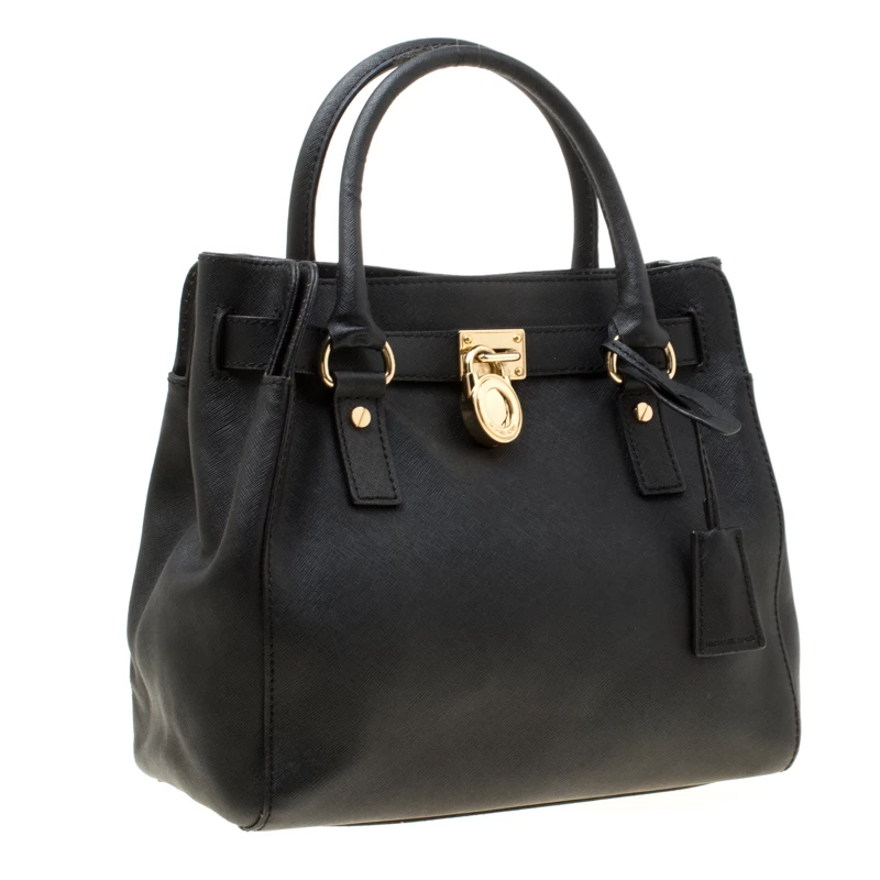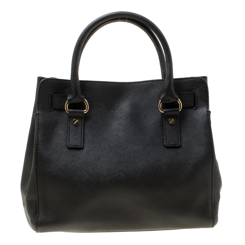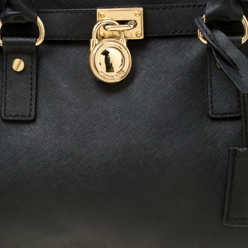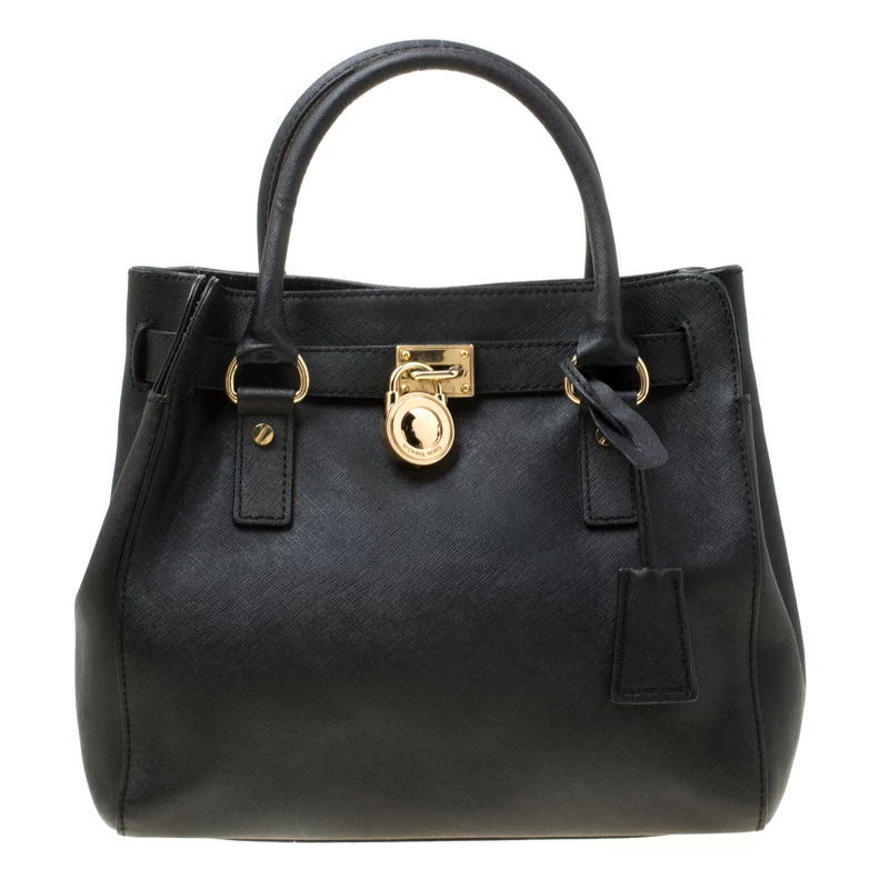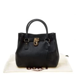 This stylish Hamilton tote from Michael Kors is a worthy buy. It has been crafted from leather in a classy blue shade and decorated with an engraved padlock on the front. The bag has two handles, a shoulder strap, and a spacious fabric interior. This creation is ideal for everyday use.