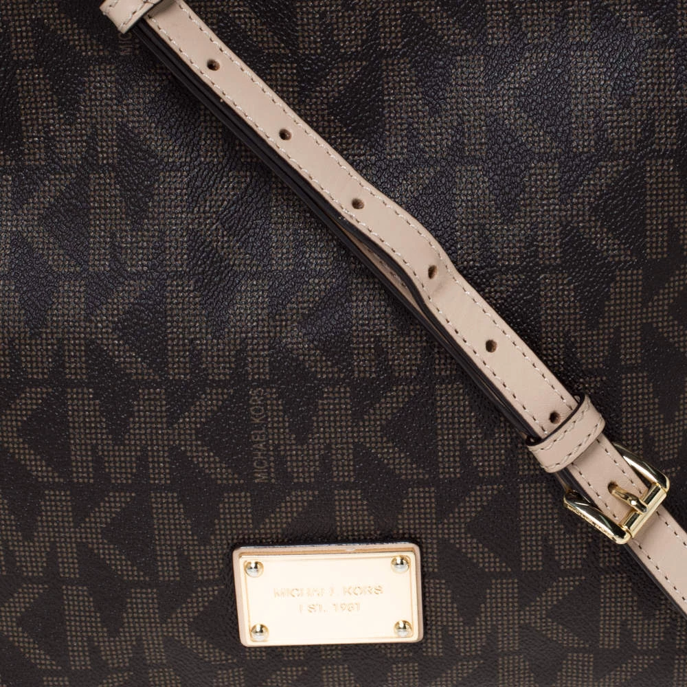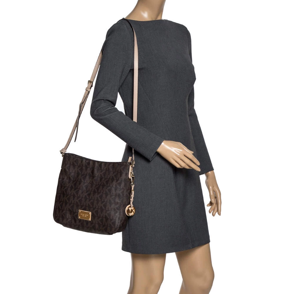 This Michael Kors tote is beautiful in so many ways. From its design to its structure, the signature coated canvas and leather bag exudes charm and high fashion. It flaunts a long shoulder handle for you to swing and a spacious nylon interior to hold all your essentials.