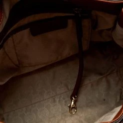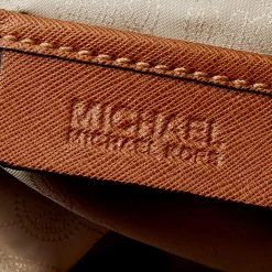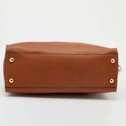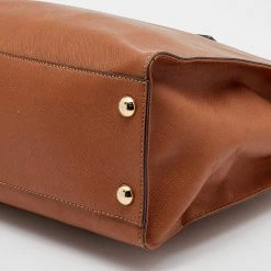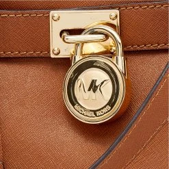This Hamilton tote is from MICHAEL Michael Kors. It is crafted from brown Saffiano leather and decorated with an engraved padlock on the front. The bag has two handles, a shoulder strap, and a spacious fabric interior. This creation is ideal for everyday use.