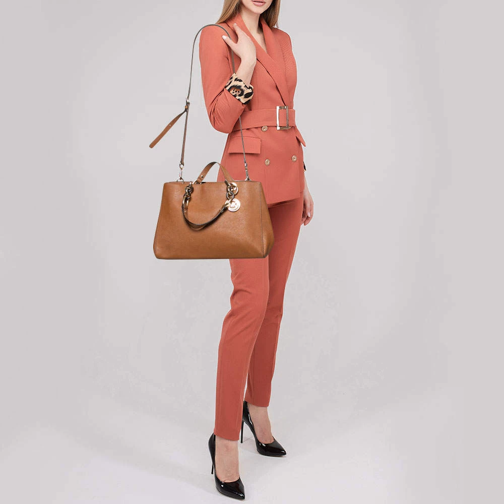This Cynthia tote by MICHAEL Michael Kors will provide you with the utmost comfort and a classy look. Crafted from Saffiano leather, it is paired with dual handles, a shoulder strap, and a branded charm. The fabric-lined interior of the bag has the optimum storage capacity to store everything you need.