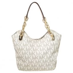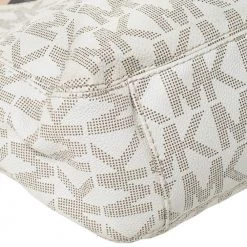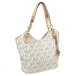 Elevate your style with this gorgeous Jetset bag by Michael Kors. Crafted from cream signature canvas & leather, the bag features dual chain-link handles with leather shoulder rests. It has a spacious fabric-lined interior that houses a zip and a slip pocket. This beauty is totally worth the splurge!