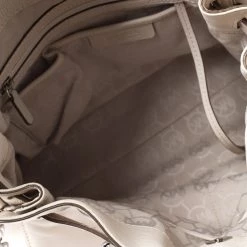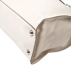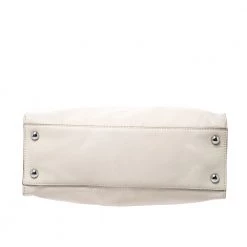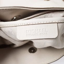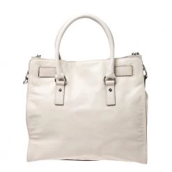 This Hamilton tote is from Michael Kors. It has been crafted from leather in a cream shade and decorated with an MK padlock on the front. The bag has two handles, a shoulder strap, and a spacious nylon-lined interior. This creation is ideal for everyday use.