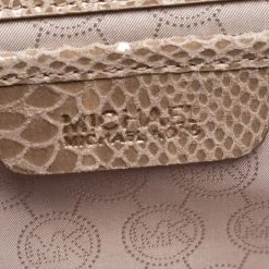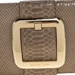 This Michael Michael Kors Sutton clutch is sure to be an amazing addition to your closet! The olive green piece is crafted from python-embossed leather and features a gold-tone buckle at the front. It opens to a spacious fabric-lined interior that can easily hold all your daily essentials. Carry it with elan!