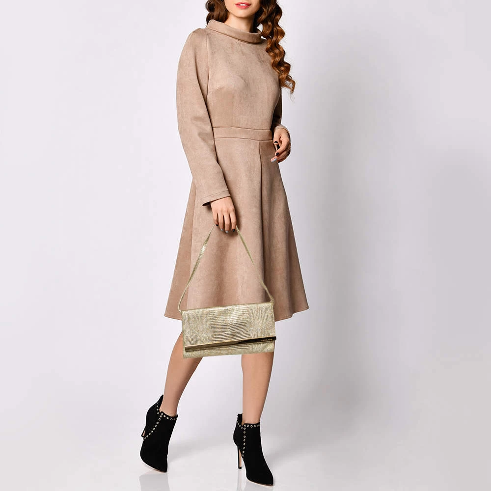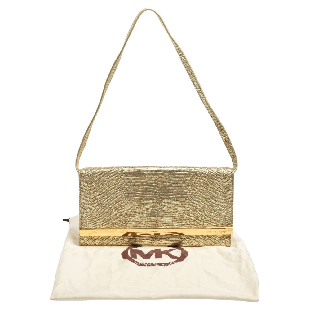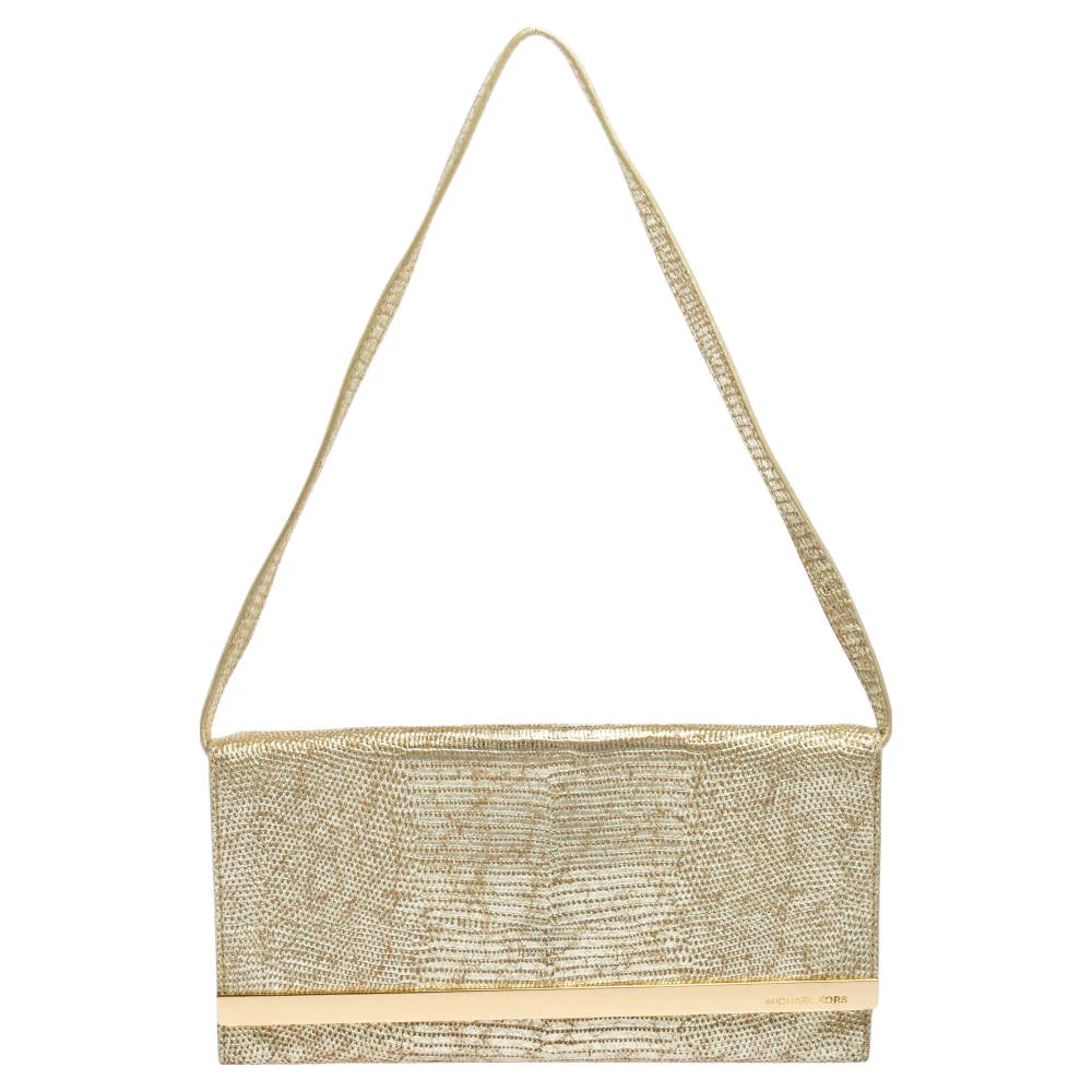This Michael Kors handbag is in vogue and will make you the talk of the town. Get this metallic gold croc-embossed leather bag that can be tossed over your shoulder for a chic look.