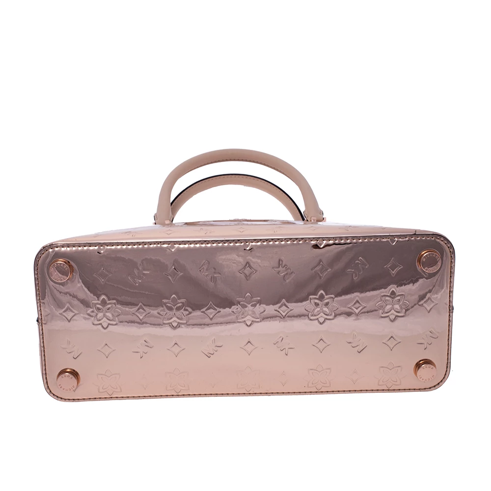 Well known for their trendy designs and exquisite craftsmanship, Michael Kors handbags are at the top of every woman’s wardrobe. Get this contemporary patent leather bag made with a modern touch. This metallic rose-gold bag has an inner lining of nylon. It is finished with dual handles, shoulder strap and rose gold-tone hardware.