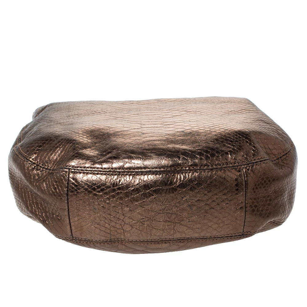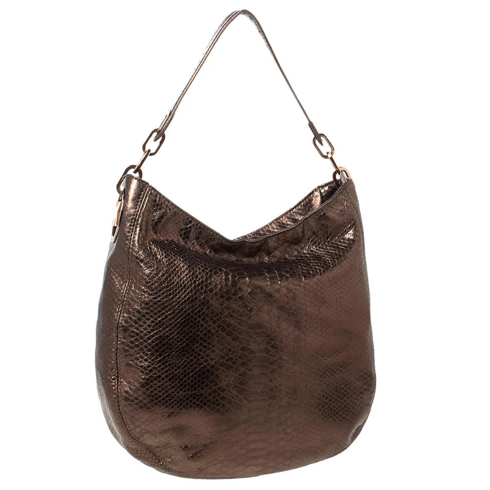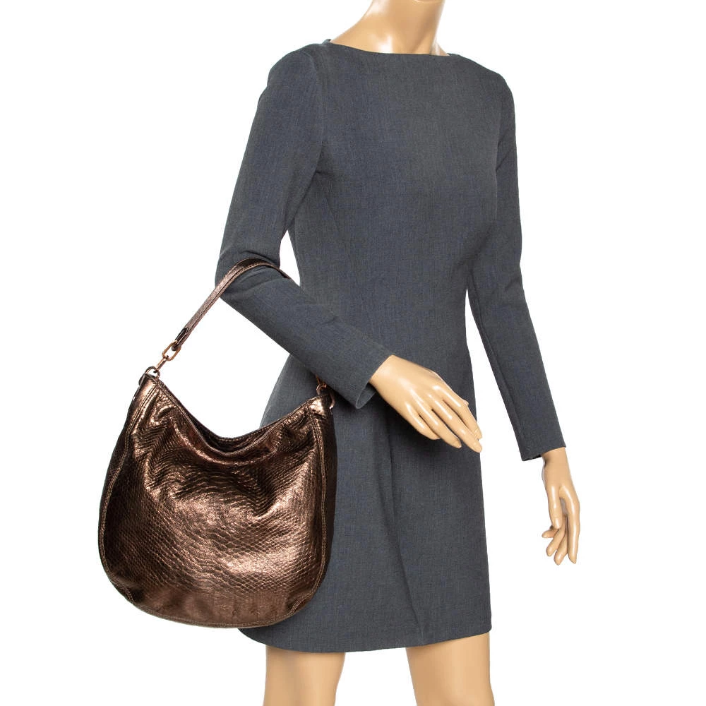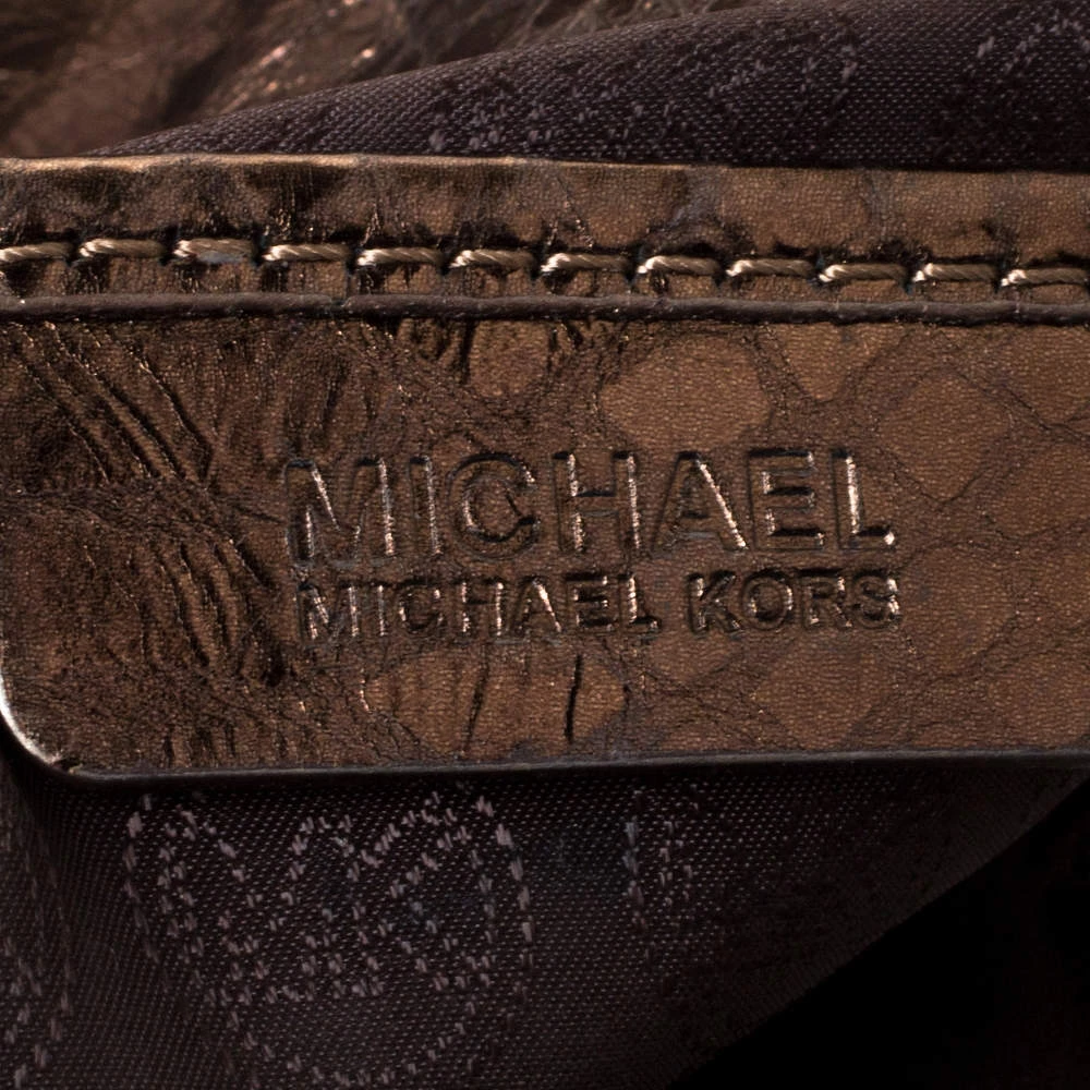 Crafted from leather, this metallic Michael Michael Kors hobo opens to a spacious nylon-lined interior housing a zip pocket. The bag is equipped with a single top handle and exudes a snake-effect all over. Swing this beauty wherever you go to lend your outfit the appropriate measure of class and style.