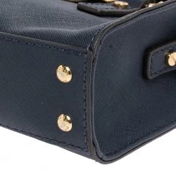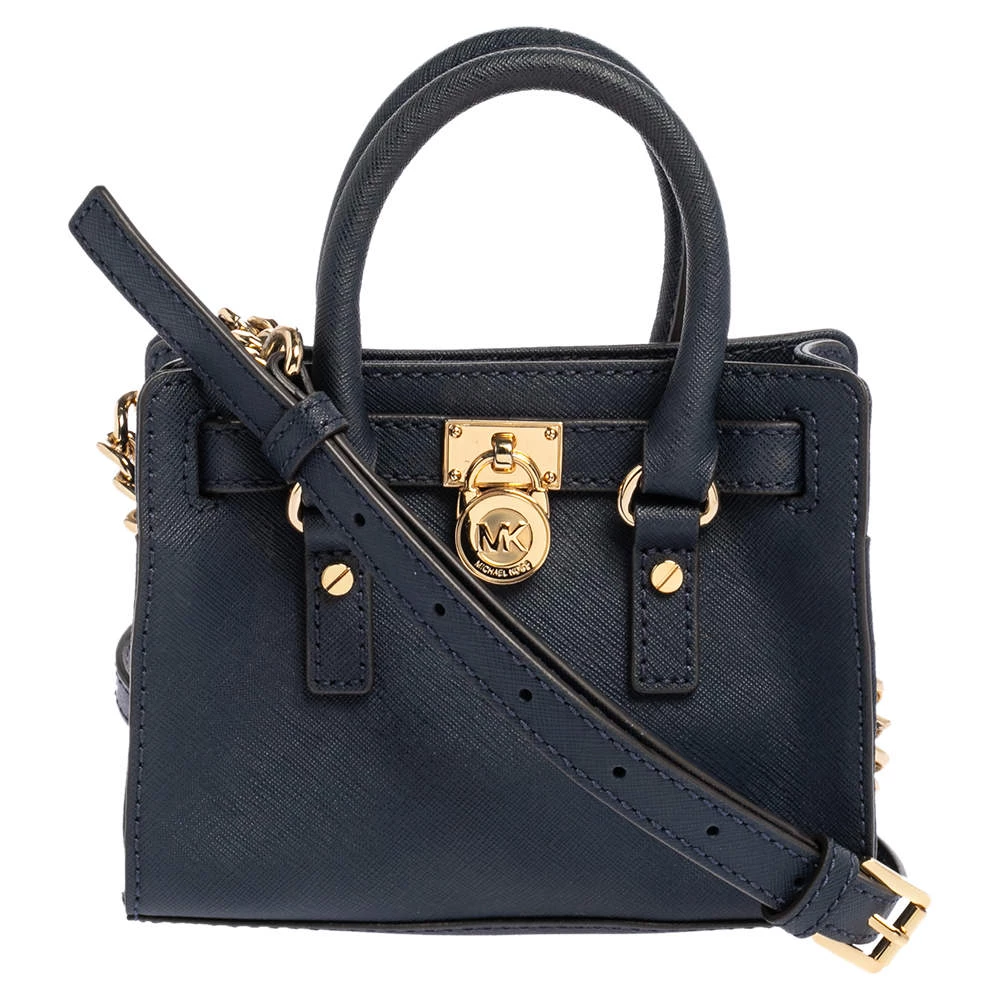 This Hamilton tote is from MICHAEL Michael Kors. It is crafted from navy blue leather and decorated with an engraved padlock on the front. The bag has two handles, a shoulder strap, and a spacious nylon interior. This creation is ideal for everyday use.
