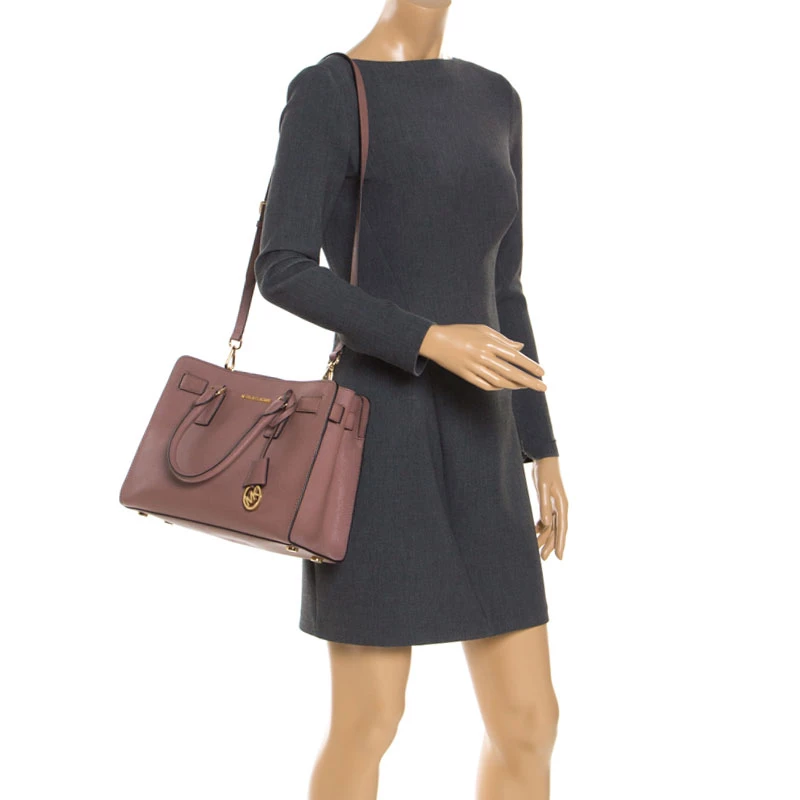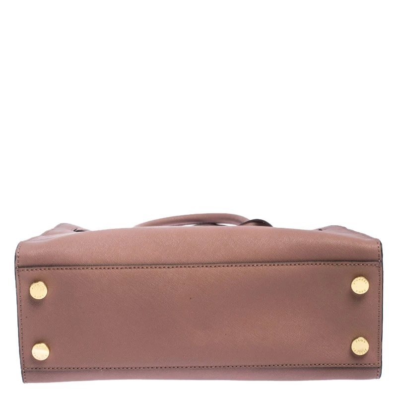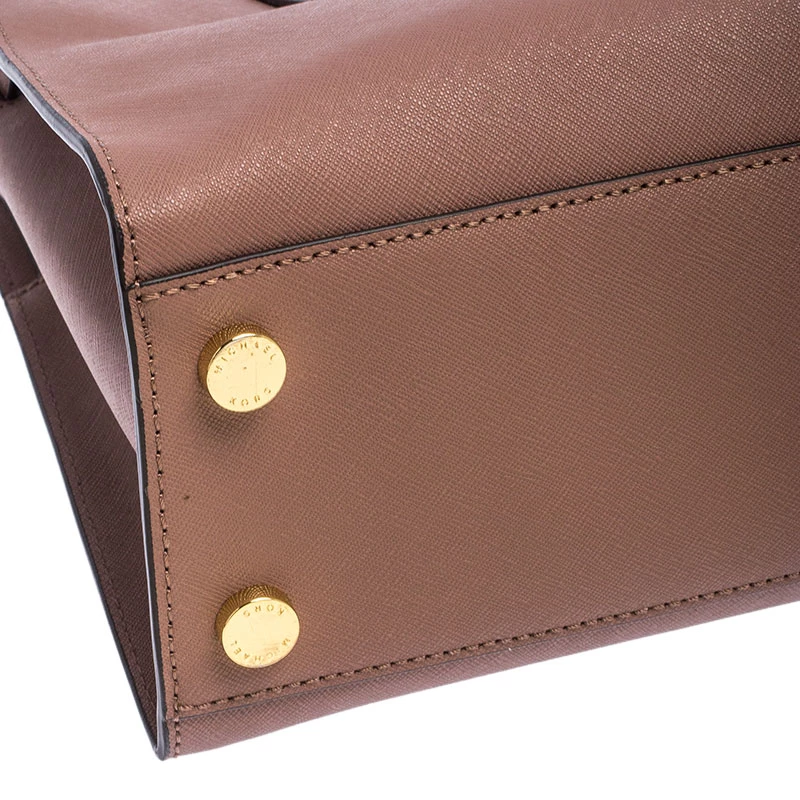 Keep it classy and elegant with this handbag from Michael Michael Kors. Look fabulous by swinging this fine leather bag. This smartly-designed bag has an interior lined with fabric and two handles on top. Casually style this bag to flaunt your up-to-date fashion choices.