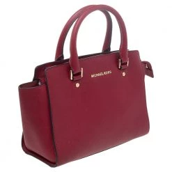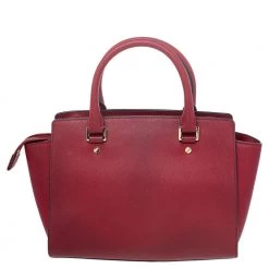 This Selma satchel from MICHAEL Michael Kors is exclusively designed to offer premium quality finish and essentiality. The external material comprises of red leather. Attractive gold-toned equipment completes this beautiful satchel.