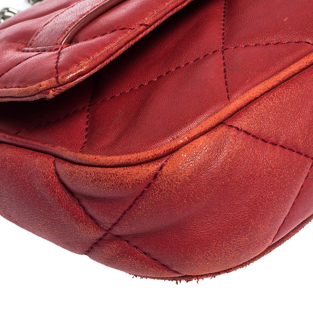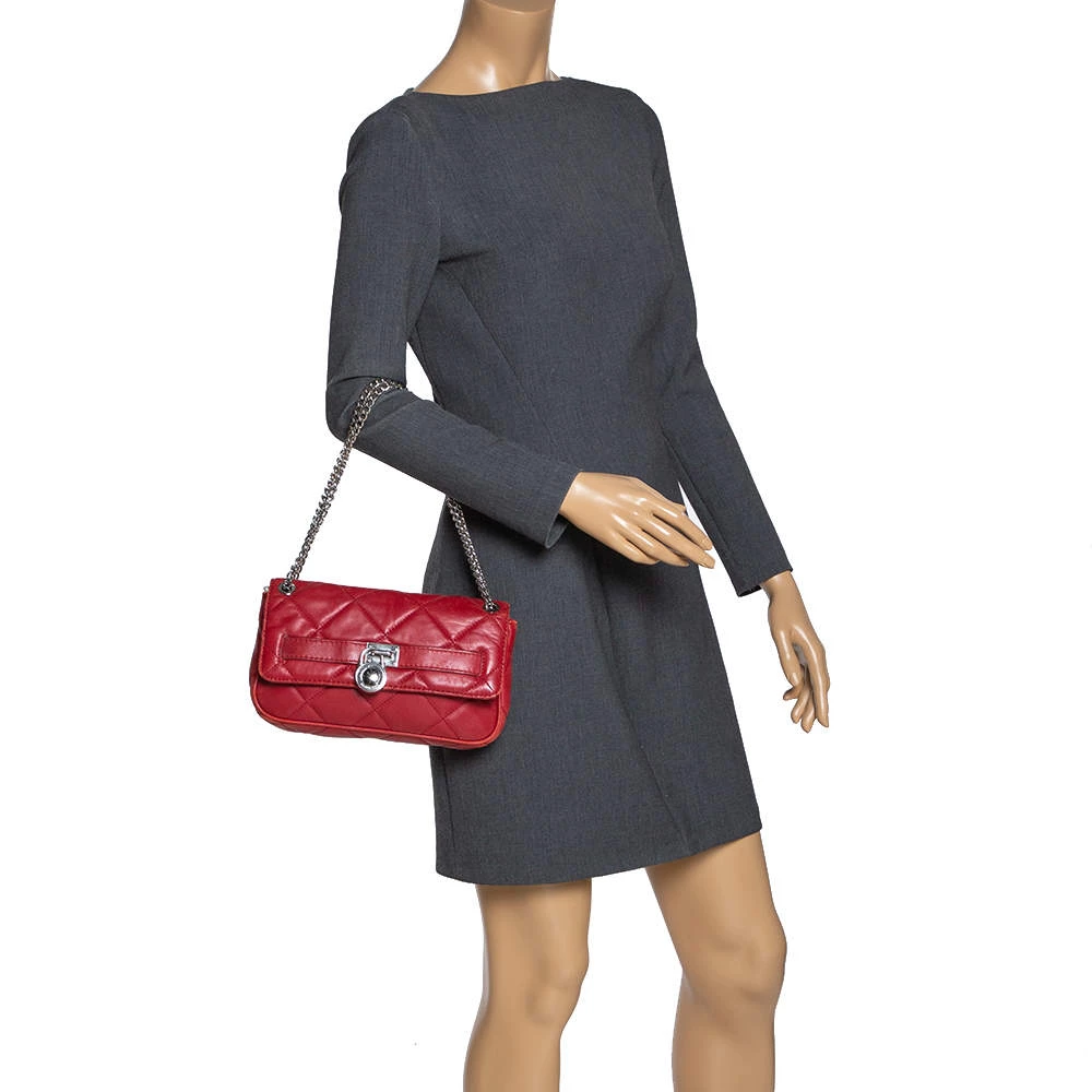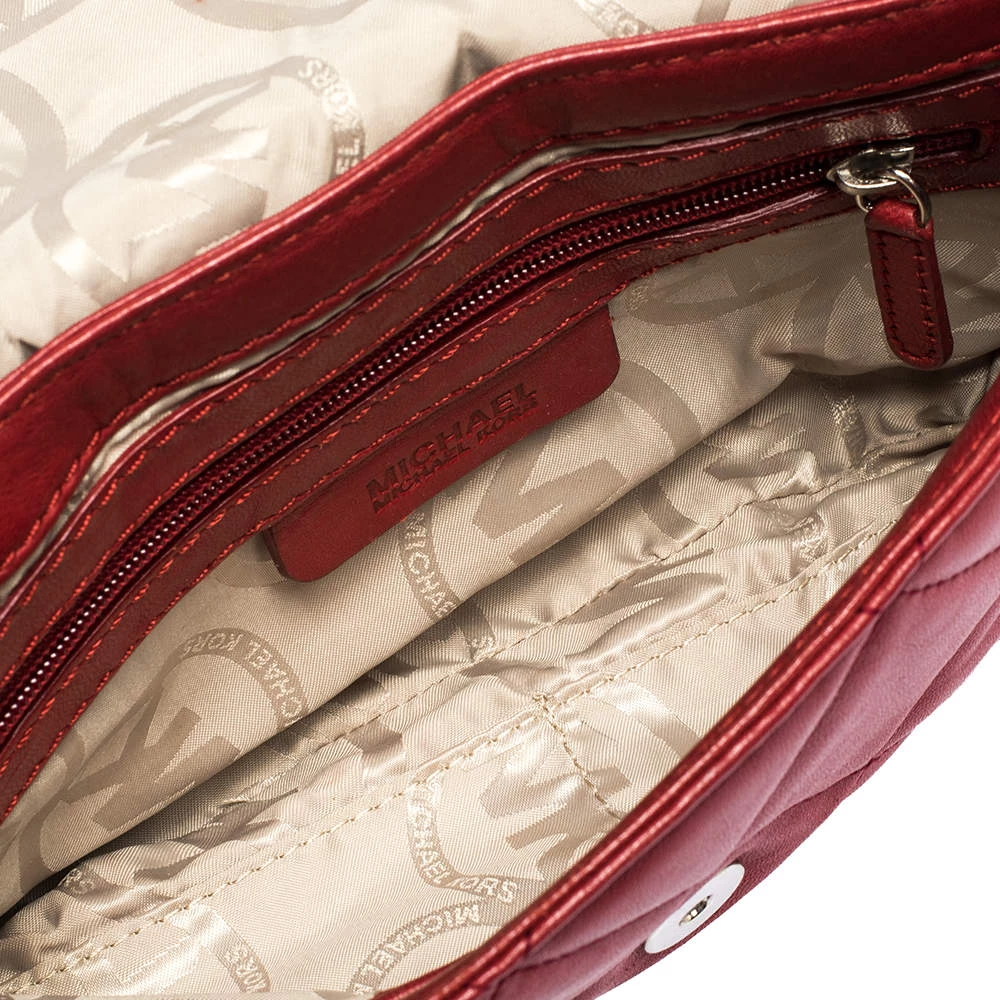 Known for their gorgeous design, this handbag from Michael Kors will raise your style quotient. Flaunt a fantastic style with this red leather bag. The interior is lined with nylon and styled with a front flap, chain straps and silver-tone hardware detailing.