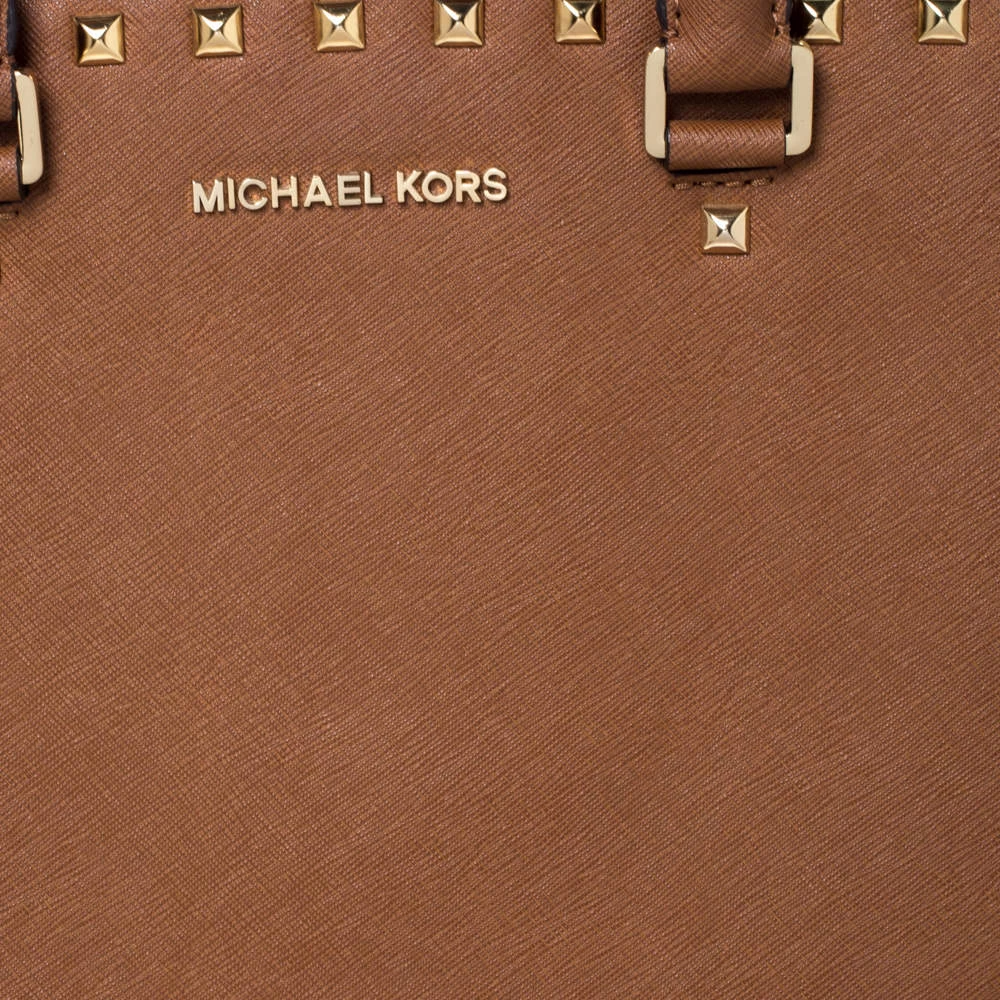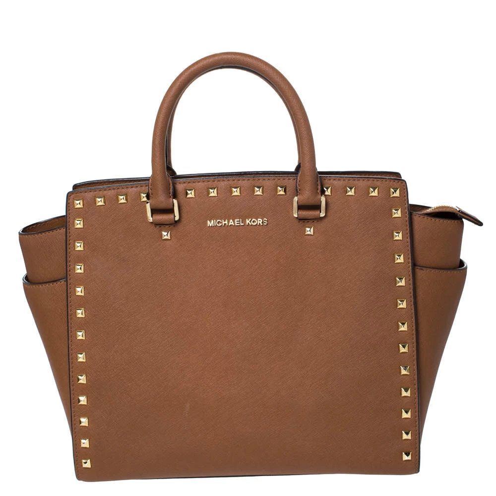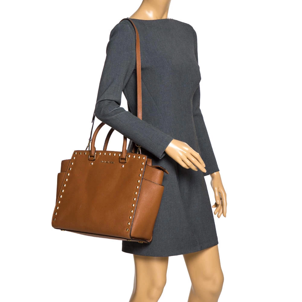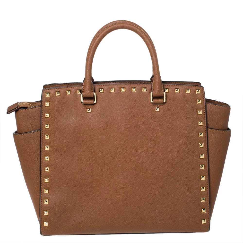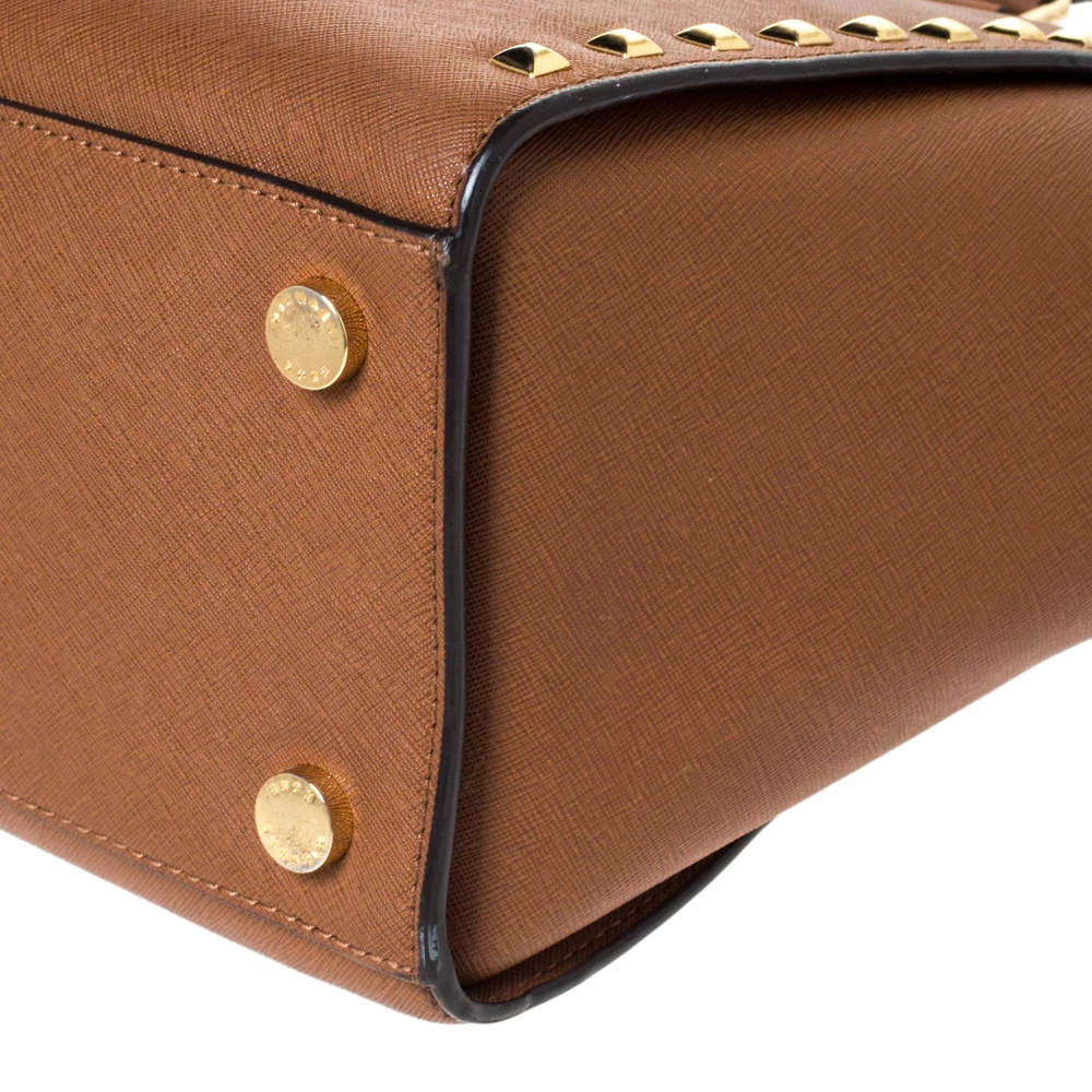 This elegant tote handbag is a perfect example of Michael Kors’s fine designing. Comfortable and easy to carry, this leather bag is a great choice for a wardrobe upgrade. The tote has an ample interior lined with nylon, two shapely handles and gold-tone hardware.