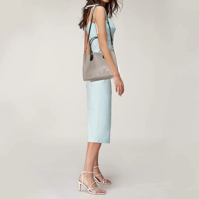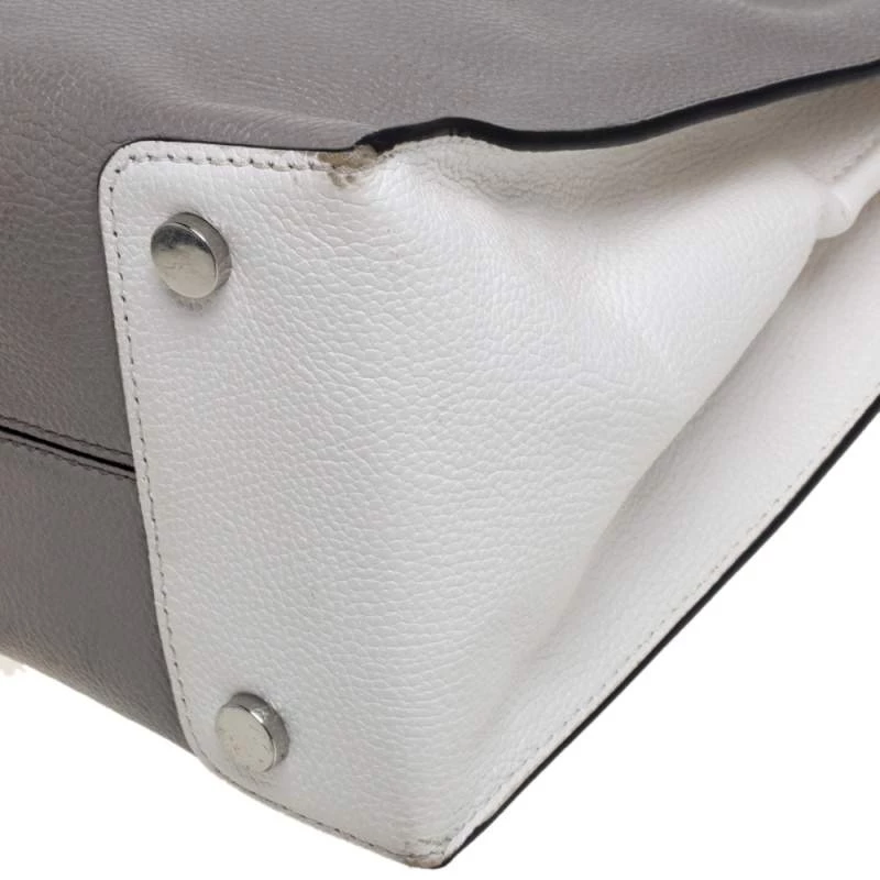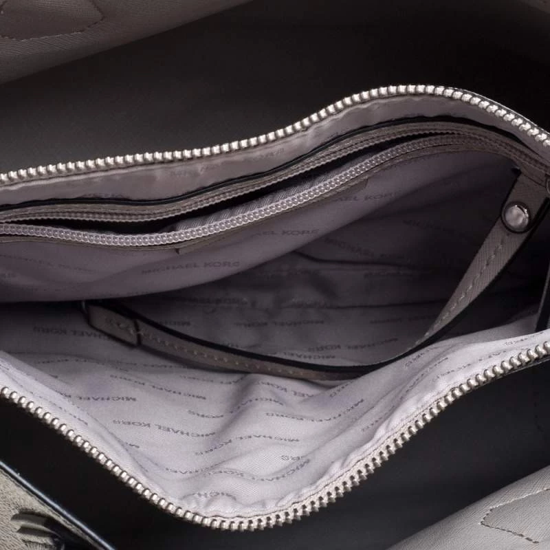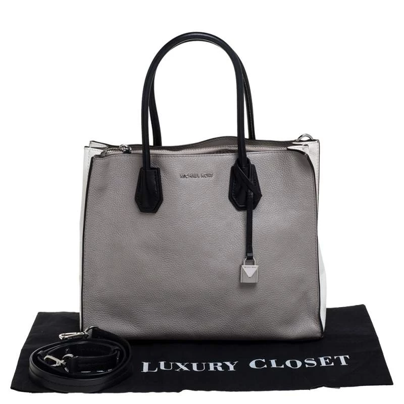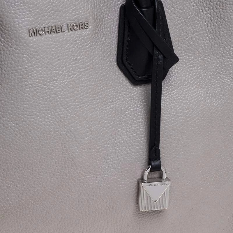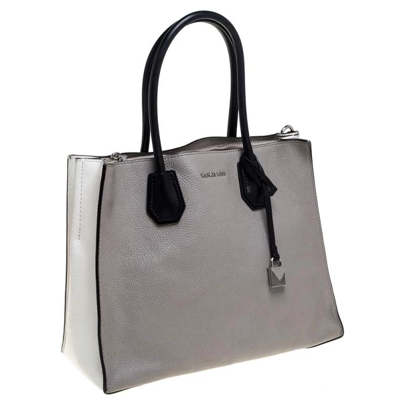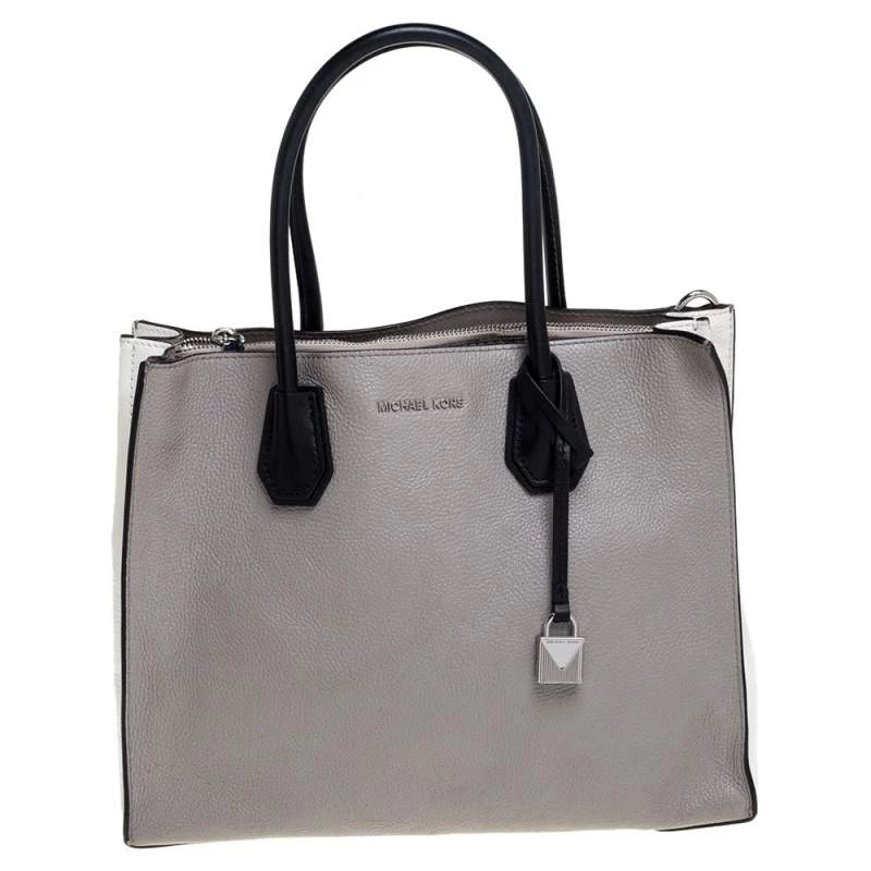 Featuring a chic and fabulous style, this Michael by Michael Kors tote is modern. Crafted from tricolored leather, the tote features dual handles, a removable shoulder strap, and a padlock. It opens to a spacious leather and fabric interior divided by a zipped compartment. The tote comes with protective metal feet and you are sure to love swinging this beauty.