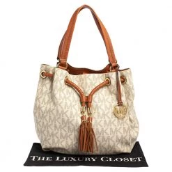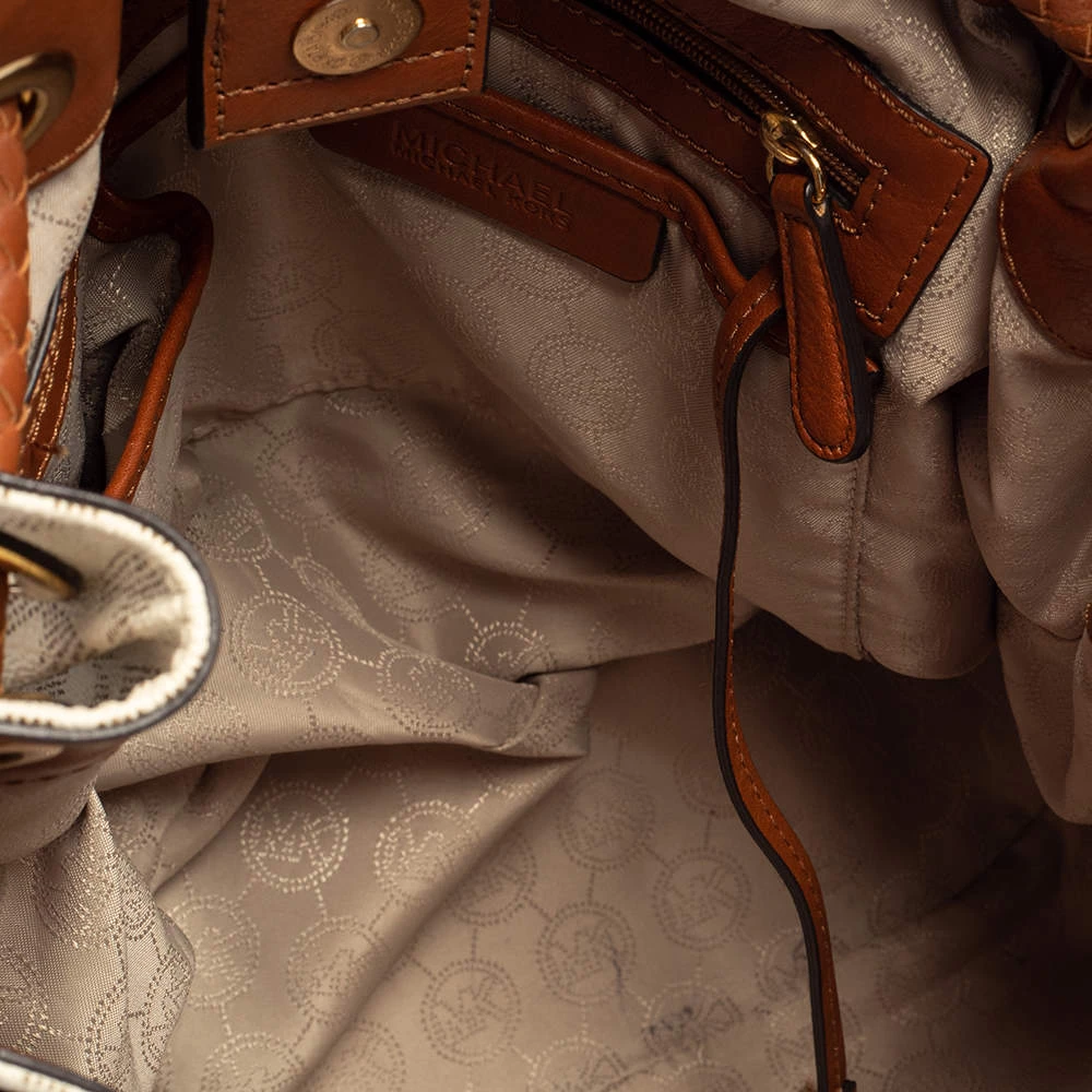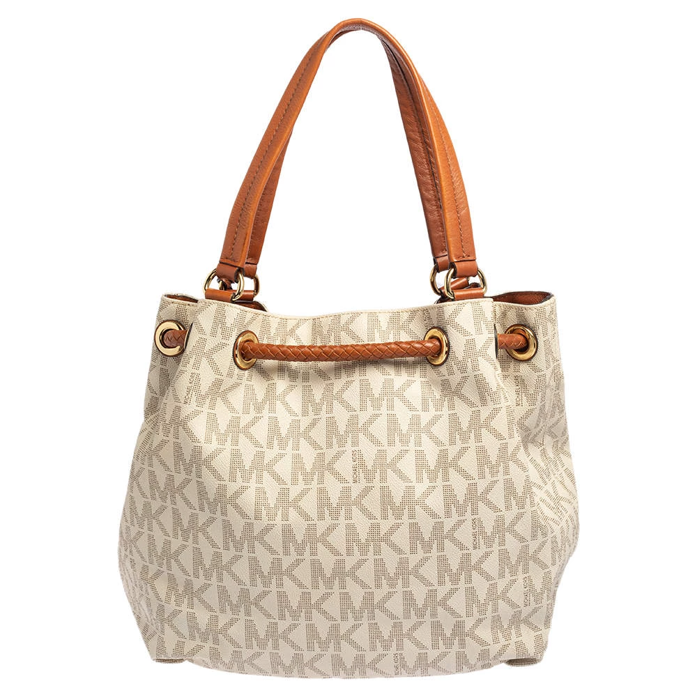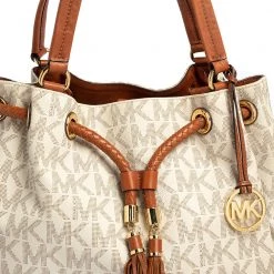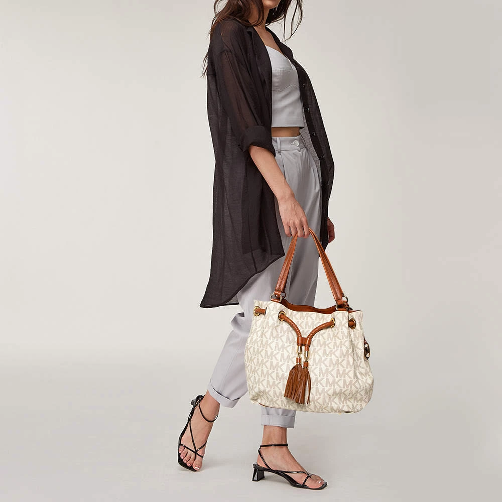 Skillfully designed, this piece from MICHAEL Michael Kors is an all-time favourite. Crafted from signature coated canvas & leather, the bag features two handles, a drawstring closure and a removable MK charm. The fabric-lined interior is well-sized and the bag is finished with gold-tone hardware.